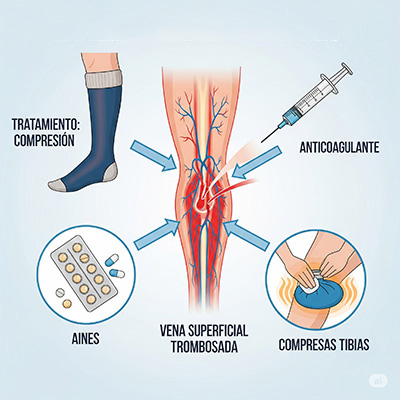 La trombosis venosa superficial es la formación de coágulos en las venas superficiales